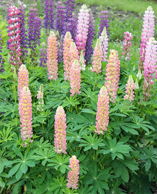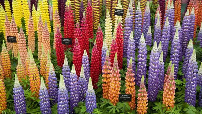 Типовий вид – багатолистий люпин, в залежності від сорту його квіти характеризуються цілою палітрою забарвлень, за винятком чорного і зеленого. Найкрасивішими є сорти з рожевими, абрикосовими та червоними квітами. Клумба квітучих люпинів має незабутній вигляд, а їх оригінальність порадує кожного любителя саду.