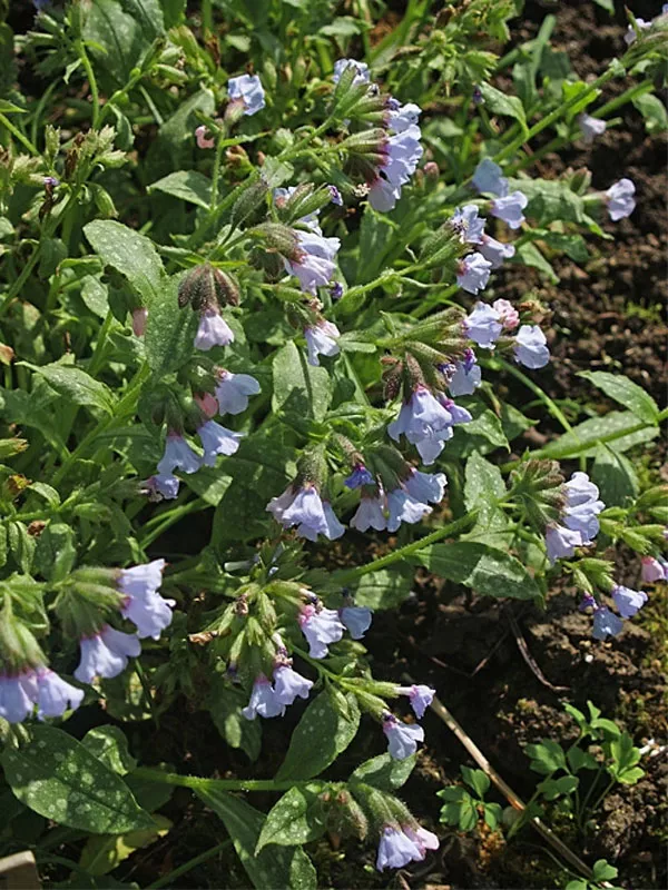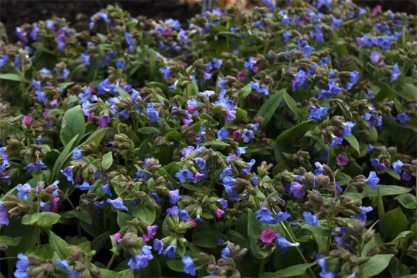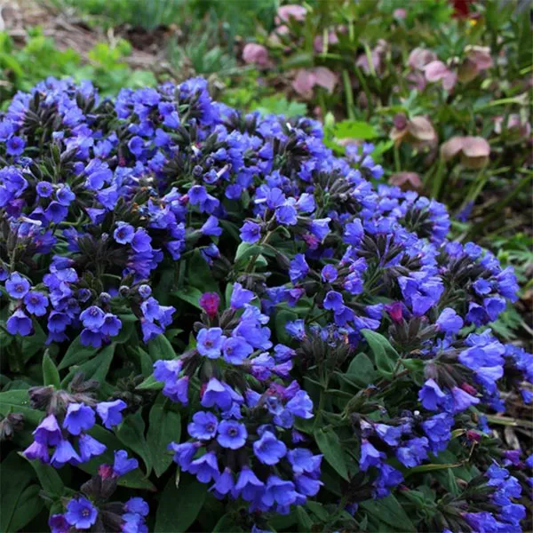 - «Блю Енсін» Blue Ensign – виростає у висоту приблизно до 25-30 см і 30-45 см у ширину, утворюючи ефектні компактні групи. Листя вузьке, ланцетне, темно-зелене, шорстке на дотик, залишається декоративним до перших заморозків. Цвіте з квітня по червень. Квіточки у вигляді дзвіночків, зібрані в рихлі волоті. Квітки в бутонах і відразу після розпускання кармінові, але дуже швидко набувають характерного синього забарвлення.