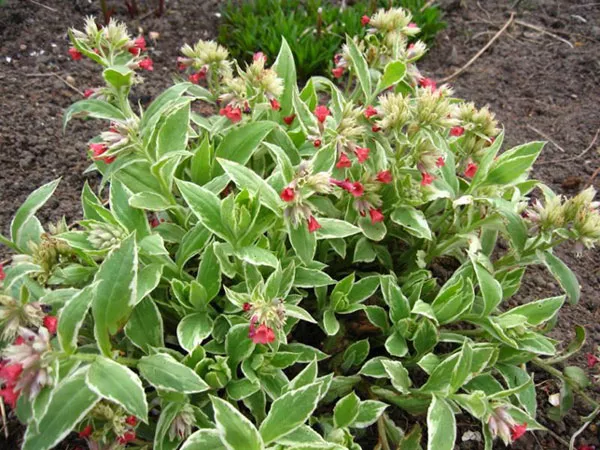 Дуже оригінальний вид медунка червона (лат. Pulmonaria rubra) з червоними квітами. Досягає 30-50 см. Листя світло-зелене, без плям, подовжене, злегка опушене, квіти зібрані в рихлі зонтики. Цвіте у квітні-травні.