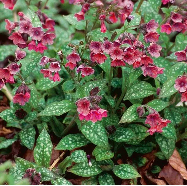 - «Леопард» Leopard – ґрунтопокривний багаторічник з красивою листкою з сріблястими крапками та чарівними квітами різного забарвлення. Виростає приблизно до 30 см у висоту та 60 см у ширину. Створює щільні скупчення ефектних, злегка опушених, еліптичних листків. Поверхня листкової пластинки темно-зелена, прикрашена нерівними сріблястими плямами. Цвіте з квітня по травень. Квітки маленькі, кармінові, з часом набувають синьо-пурпурового кольору. Багатоцвітучий сорт.