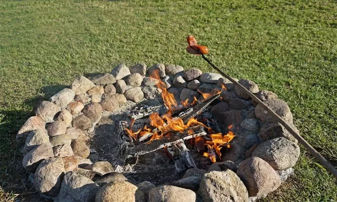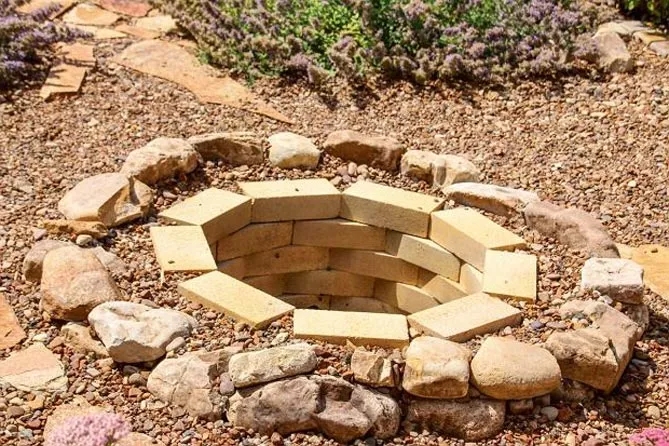 Найпростіший спосіб організувати місце для багаття на дачі своїми руками – виділити звичайне коло голої землі, що обмежить поширення полум'я. Посередині кола можна вирити невелику ямку для полегшення контролю над вогнем. Але рослинність навколо буде спалена, а на місці вогнища залишиться пуста, неестетична ділянка. Це рішення не надто безпечне, вогонь може легко поширитися на сусідні рослини, кущі, дерева, предмети – тому багаття вимагатиме постійного догляду та обережності.