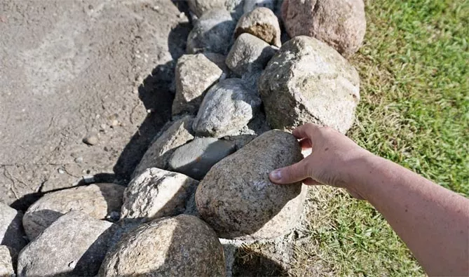Цікавий варіант – камені, які можна назбирати самостійно в навколишніх лісах, полях, луках. Натуральні матеріали красиві та безкоштовні, що, безсумнівно, істотна перевага. Знадобиться також 1-1,5 мішки цементу вагою 25 кг.