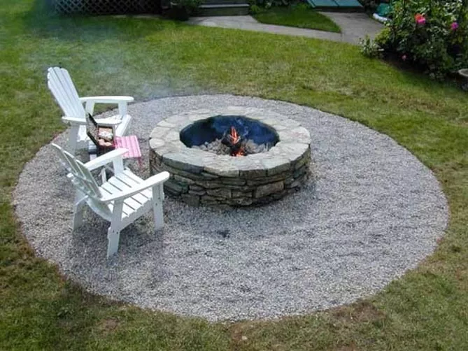 - Вкінці подбаємо про естетику – оточуємо вогнище кругом гарних каменів, покриваємо область навколо гравієм.