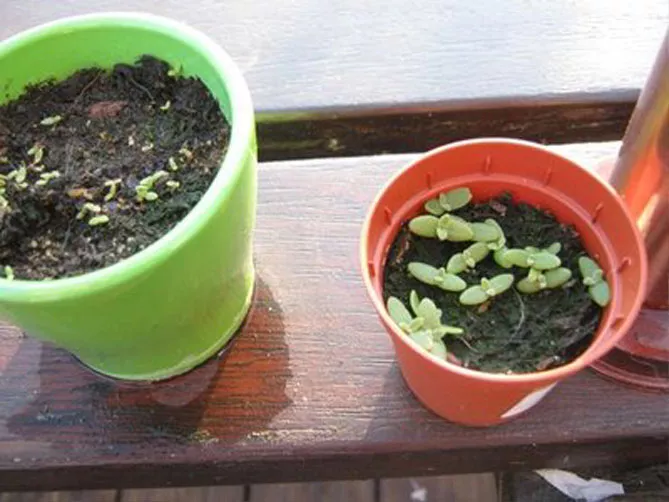 Коли сіянці дадуть кілька листочків, їх пікірують по кілька штук в окремі горщики.