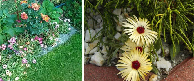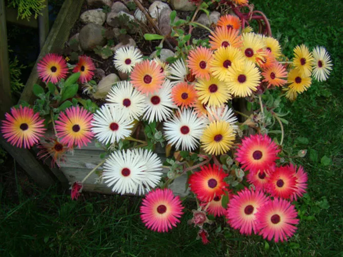 Невисокі стебла, тривалий період цвітіння, яскраві квіти і дуже низькі вимоги до вирощування роблять мезембріантемуми незамінними квітами на балконах і терасах, а також на сонячних ділянках в саду.