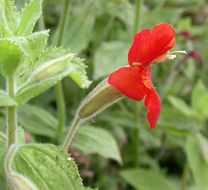 Витривалий багаторічний вид Губастик червоний (Mimulus cardinalis) родом з Америки цвіте з червня по вересень, має численні трубчасті квіти з вигнутими пелюстками, яскраво-червоні з жовтим горлечком, у формі львиного зіва. Висота рослини: 60-80 см, ширина: 40 см. Кущик прямостоячий, розгалужений, листя та стебла опушені, листя ланцетні, темно-зелені.