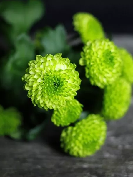 - «White green» – висота 60 см, цвітіння в середині жовтня, квітка 6 см. Сорт рекомендується для отримання зрізаних квітів. Сильно росте у вигляді щільних кластерів суцвіть. Вимоги: сонячне або частково затінене місце, проникний ґрунт, суглинний ґрунт може бути розпушений піском або компостом.