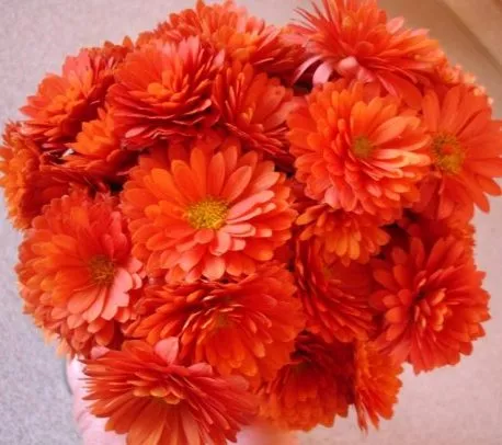 - Маленька хризантема «Белла Голд» – низькорослий сорт, що росте до 35 см. Цвіте вдосталь маленькими золотистими квітами з оранжевим центром, розмір 3-4 см. Стійкий до хвороб.