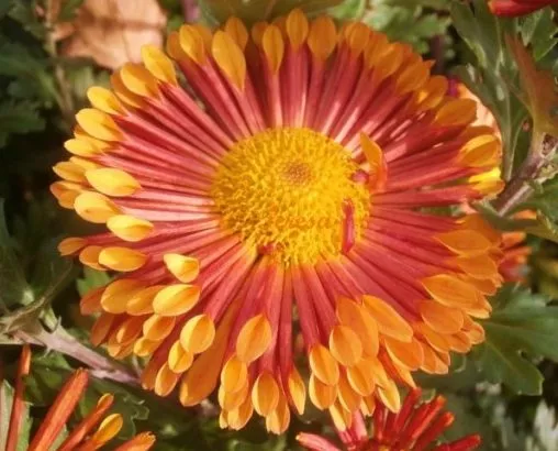 - Маленька хризантема «Раджа» – популярний сорт. Висота рослини 35-40 см. Починає цвітіння в кінці вересня. Жовто-оранжеві квіти діаметром до 4 см.
