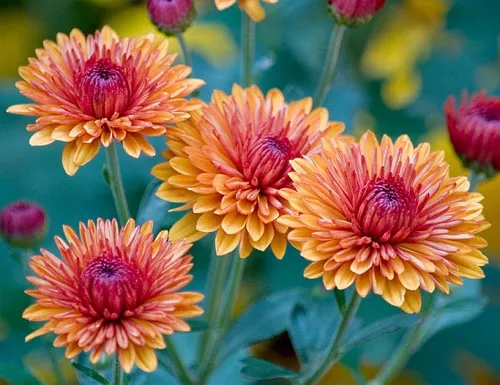 Популярні осінні квіти з родини Айстрові, що включає близько 50 видів. В садівництві найважливіша хризантема grandiflorus. Хризантеми ідеально підходять для грядок, терас, виглядають особливо красивими з ранковою росою або морозом. Низькі сорти ідеально підходять для оформлення меж грядок, високі – для зрізаної квітки, стоять у вазі до 4 тижнів.
