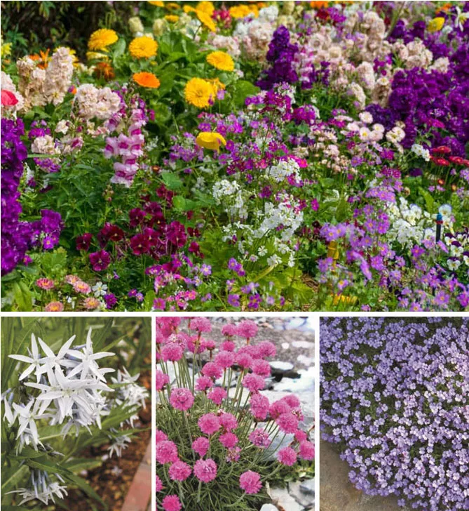 Багатобарвні квітучі килими створюють багато квіткових рослин.