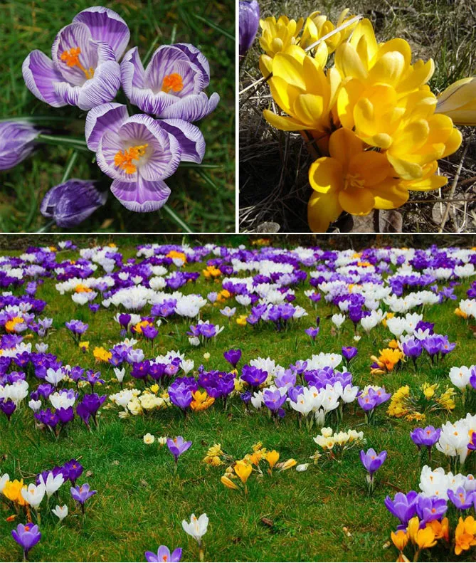 Крокуси – багаторічні квіти, зазвичай залишаються на одному місці кілька сезонів, після цвітіння важко знайти цибулини на газоні. Тому не вийде викопувати і садити їх восени. Для забезпечення хорошого росту і розвитку навесні крокуси удобрюють. При правильному догляді рослини добре ростуть, через 3-4 роки утворюють великі скупчення квітів. Потім варто відділити їх, пересадити в інше місце.