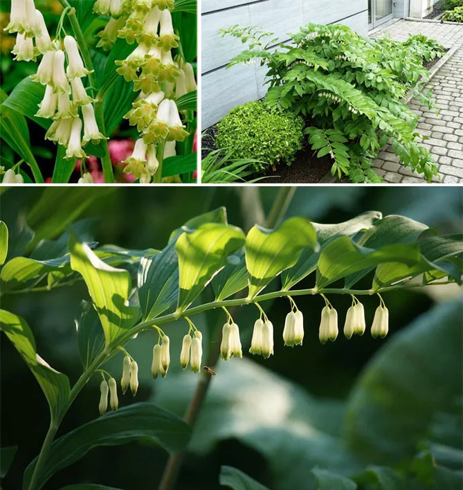 Багаторічна рослина Polygonatum – у нижній частині м'яко зігнутих стебел наприкінці весни з'являються дзвоноподібні квіти, іноді ароматні, що звисають. Розростається рослина кореневищами. Ґрунт має бути вологим. В садах вирощується найпоширеніший гібридний сорт або великорозмірна версія (P. multiflorum) висотою 1 м шириною 30 см.