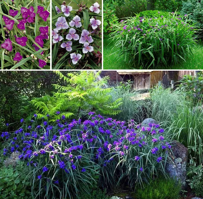 Tradescantia andersoniana – багаторічна квітуча рослина виростає до 90 см зі стеблами, рясно вкритими листям. Квіти в основному сині, фіолетові, рожеві з'являються з травня по вересень, на жаль, закриваються в похмуру погоду. Традесканція вимагає родючого ґрунту. Квіти ідеально представлені на клумбах в декоративній композиції, невеликих групах, висаджених за схемою 7 штук на 1 м².