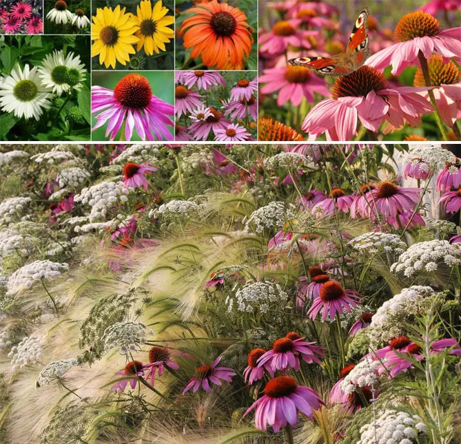 Квіти Ехінацея належить до родини Asteraceae, що включає 9 видів, родом з Північної Америки. Фіолетова ехінацея найвідоміша серед садівників.