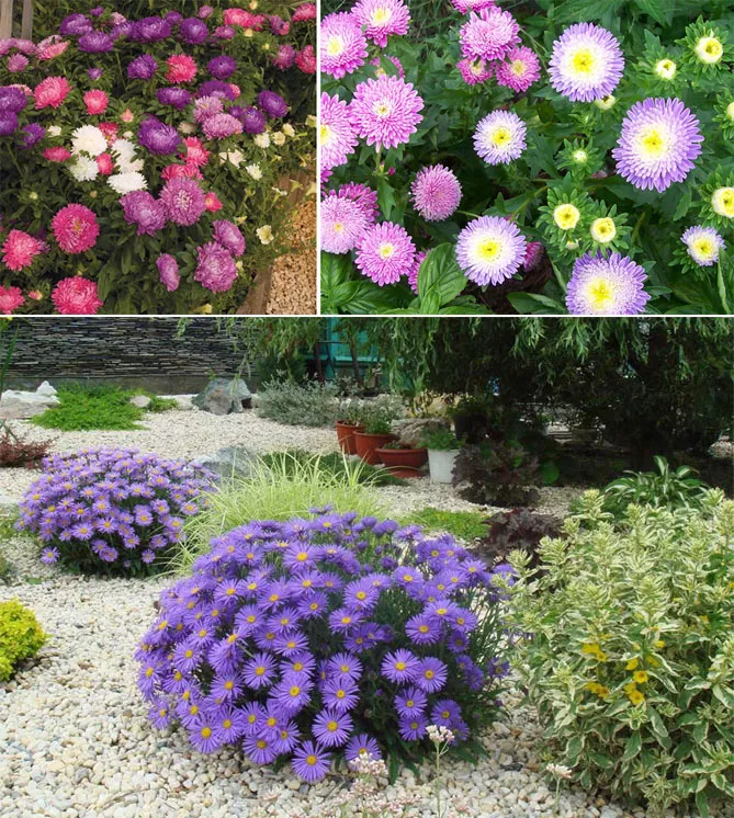 Квіти належать до родини Айстрові. Розцвітають з весни до пізньої осені. Квітка росте до 20 см у висоту. Віддає перевагу піщаному, проникному, вапняному ґрунту, сонячним позиціям. Існує величезна різноманітність сортів айстр, серед яких зустрічаються квітки різної величини, кольору.