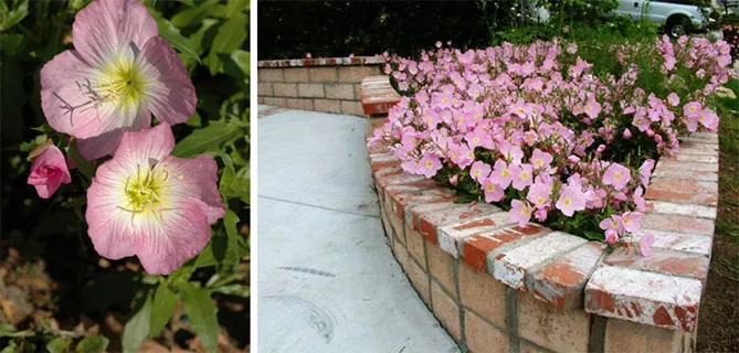 Oenothera speciosa – багаторічна рослина, що створює незвичайні довгі підземні корені. Примула дуже популярна, росте до 50 см у висоту. Первоцвіти – білі квіти, рожевуваті по мірі відцвітання, сильно ароматні. Висаджують по 9 штук на 1 м².