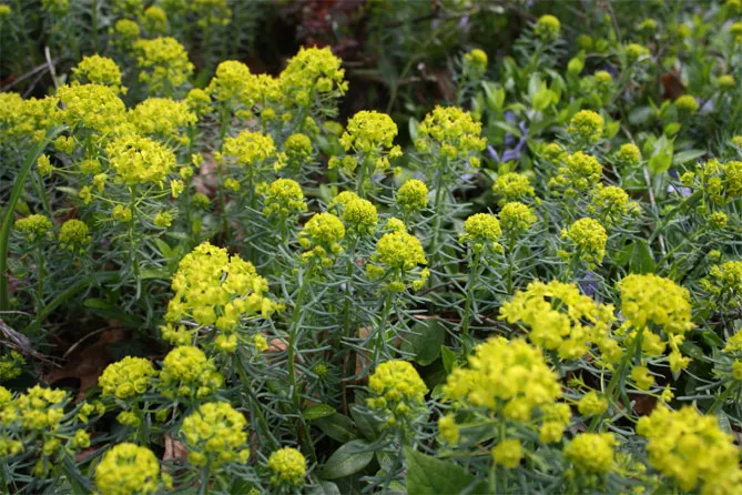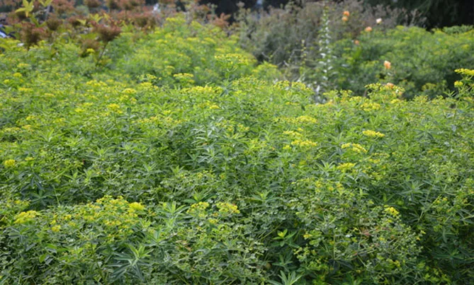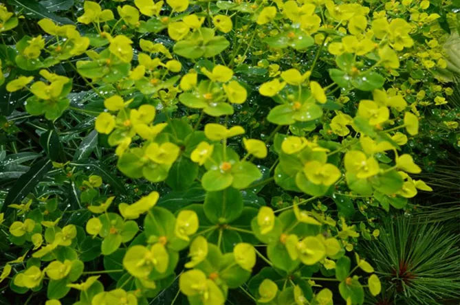 Молочай миндалевидный (Euphorbia amygdaloides) многолетний, часто ведет себя как двухлетнее растение, после цветения может погибнуть. Цветет весной и будет отлично смотреться в натуралистических композициях.
