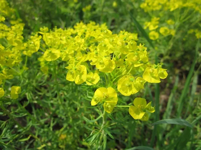 - Молочай острый (Euphorbia esula) – населяет склоны и железнодорожные насыпи.