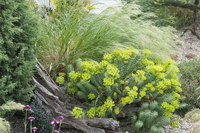 В саду молочай отлично растет на каменистых скалах, возвышенных клумбах, идеально на местности, расположенной под уклоном.