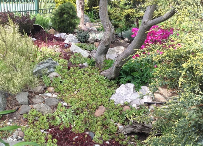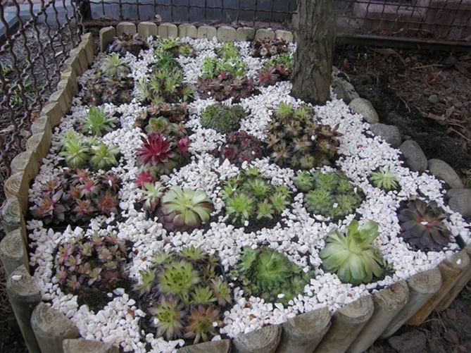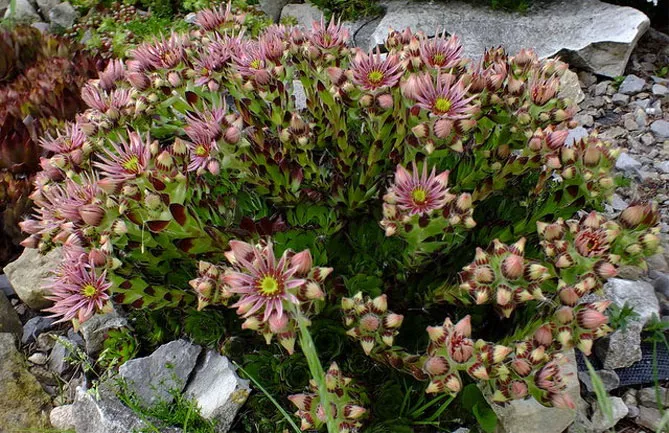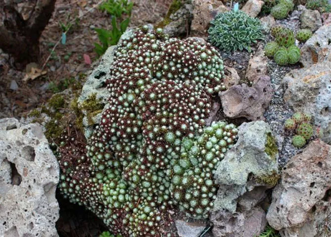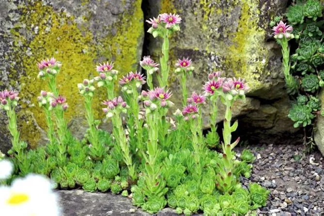 Більші сорти можна оточити дрібними сортами. Також можна комбінувати молодило з наступними рослинами: