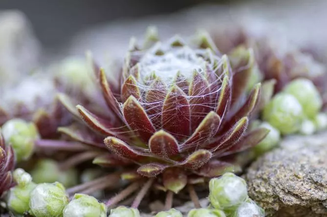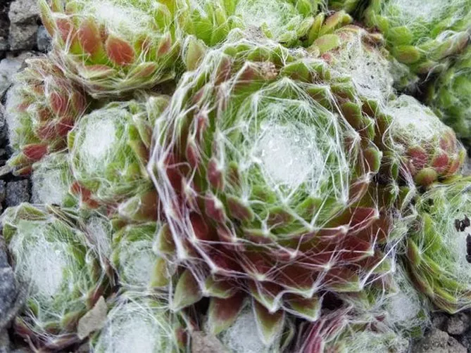 Також заслуговує на увагу крихітне павутинне молодило (Sempervivum arachnoideum), чиї сильно опушені листки виглядають наче їх покриває павутина. Краще вирощувати його в домашніх умовах або переносити на зиму в теплицю, в холодному кліматі рослина має тенденцію загнивати внаслідок осінньо-зимової високої вологості.