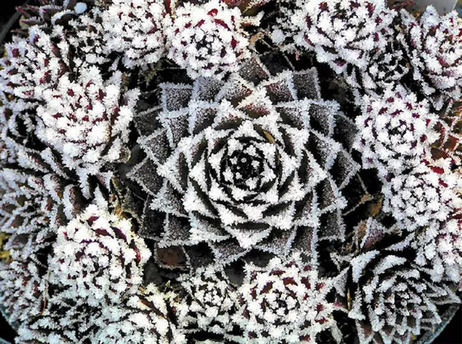 - Восени молодило готується до зимівлі – листя знову групуються у кульки, коріння зовсім перестають рости. У листі утворюються речовини, які дозволяють пережити морози. Молодило рідко замерзає, особливо якщо його вкриває шар снігу.