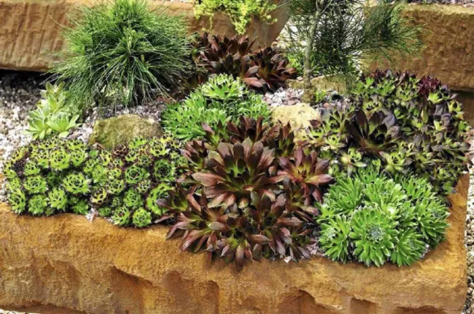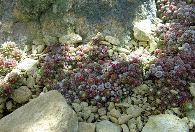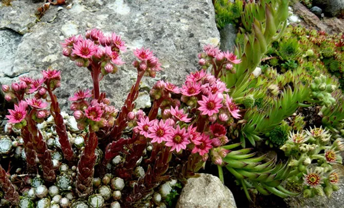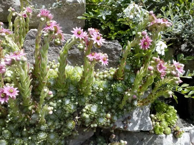 У кам'янистому саду або на квітковій стіні (навіть на вертикальній стіні) варто посадити кілька різнокольорових видів і сортів молодила.