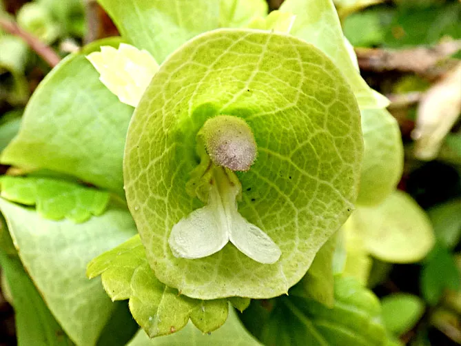 Ці чашечки діаметром 3 см, що мають форму дзвіночка і щільно прилеглі один до одного, дуже міцні. Дивовижні «квіти» тримаються дуже довго, поступово їх яблучно-зелений колір тьмяніє і стає блідо-бежевим, місцями відтіненим фіолетовими штрихами. Квіти сильно і приємно пахнуть.