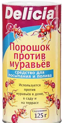 Активна харчова пастка у вигляді порошку. Дозволяє в короткі терміни позбутися садових, домашніх і лісових мурах на дачі. Спосіб використання Делики надзвичайно простий. Гранули розсипаються в місцях скупчення комах. При використанні в приміщеннях для зручності подальшого прибирання їх можна розмістити на невеликих підкладках. При обробці важкодоступних місць на основі порошку готують розчин з розрахунку 125 грам засобу на 6 літрів води. Отриманою сумішшю оприскують мурашник, заражені комахами конструкції, стовбури плодових дерев.