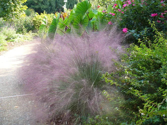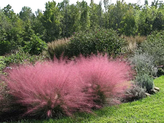 У наших садах зазвичай вирощують злак мюленбергія волосовидна або оленяча трава (Muhlenbergia capillaris, син. rigens).