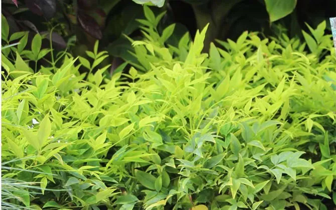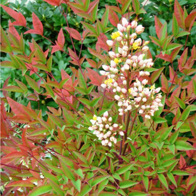 Карликовий сорт «Фаєр Павер» (Nandina domestica Fire Power) з дуже компактним зростанням (60 см). Період цвітіння: червень-серпень. Його можна використовувати окремо для структурування невеликих садів, у горщиках або на клумбах.
