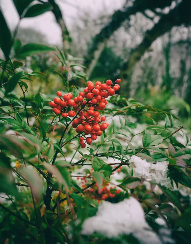 Плодоношення нандини декоративними ягодами червоного кольору буде добре поєднуватися з: