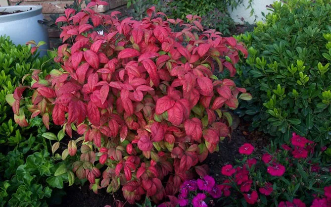 Восени яскраве листя цього чагарника буде чудово поєднуватися з: