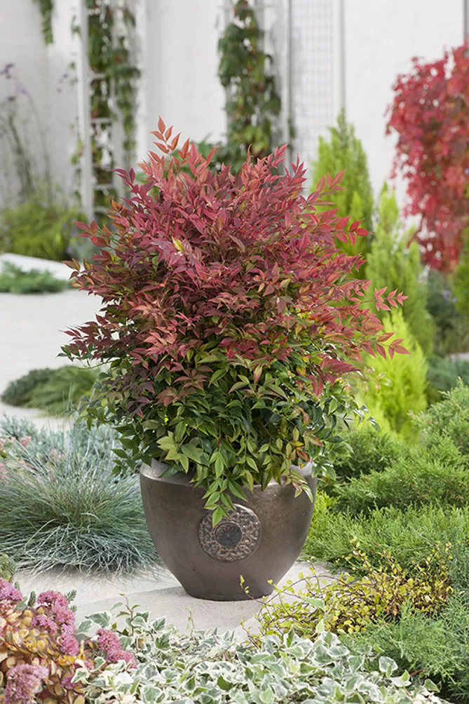 Горщиковим нандинам потрібно більше води, їх потрібно регулярно поливати, особливо влітку, і мульчувати кожного року навесні.