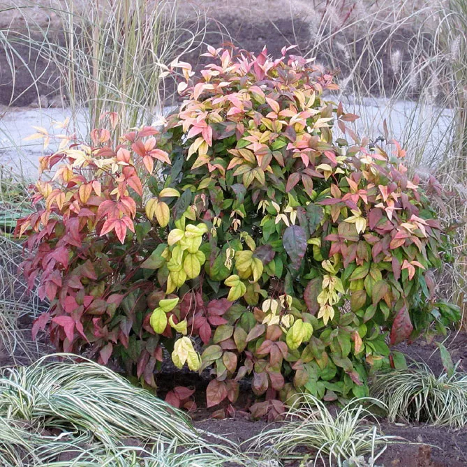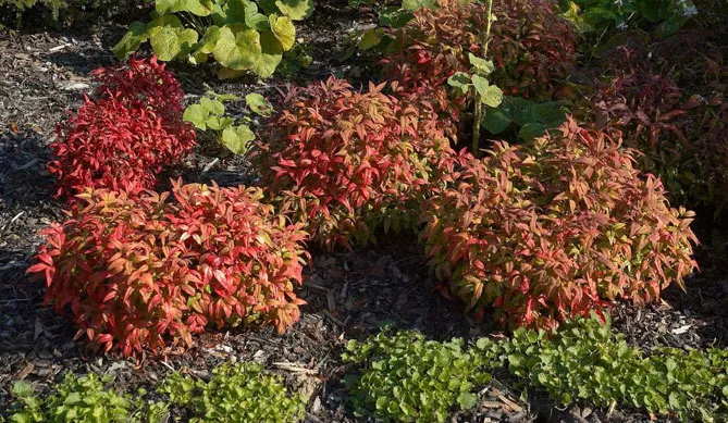 Посаджена в нижній частині клумби, нандина легко поєднується з багаторічниками, такими як: