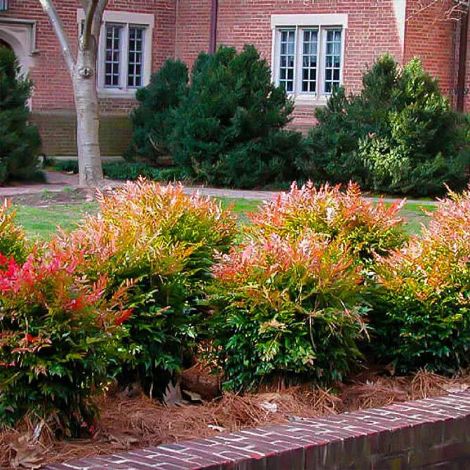 Елегантність крони нандини заслуговує розміщення серед дрібніших рослин, які не будуть маскувати витончений силует. Можна посадити її перед більш високими чагарниками – цеанотусом, дереном.