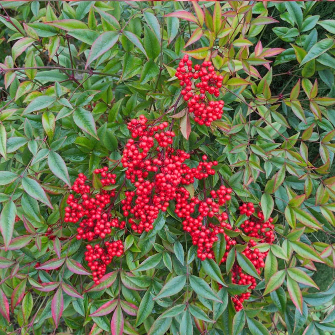 Нандина (лат. Nandina) , також звана «Священним бамбуком», є одним з рідкісних чагарників з вічнозеленою листям, колір якої змінюється залежно від пори року: від червоного навесні до зеленого влітку та червонувато-оранжевого або пурпурового восени. Він пропонує всі відтінки осіннього листя.