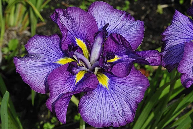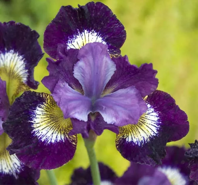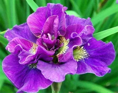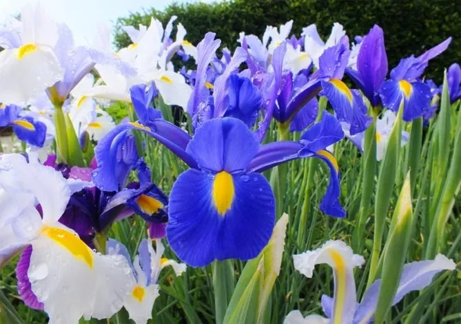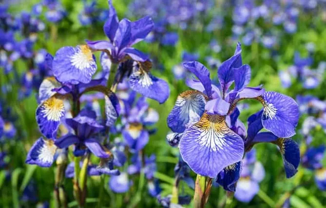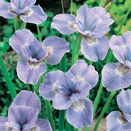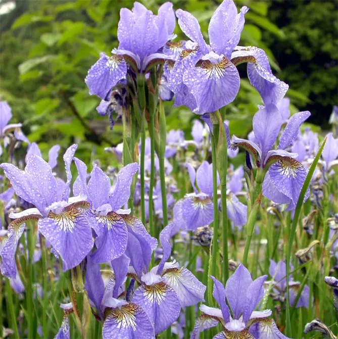| Сибірські сорти синьо-блакитного кольору – квіти цвітуть з липня по серпень. Пелюстки квітів дрібніші, але з більшою кількістю суцвіть. Один з найцікавіших сортів – Перріс Блю (Perrys Blue). Цей сорт дуже рясно цвіте блакитними весняними квітами (цвітіння: травень-червень). Рослина повністю морозостійка. Її можна посадити на квітниках. Чудово виглядає біля ставка. |
