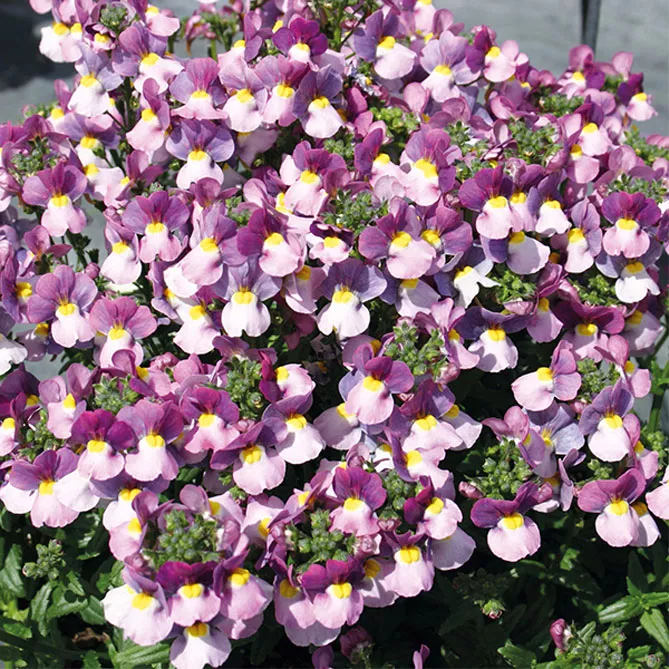 Можна обрати більш розлогу рослину (Nemesia fruticans – кущиста) або компактну з піднятими стеблами (гібрид серії Karoo). Nemesia fruticans характеризуються унікальною асиметричною структурою, її рясно квітучі кущики стануть чудовим прикрашанням клумби, балкона.