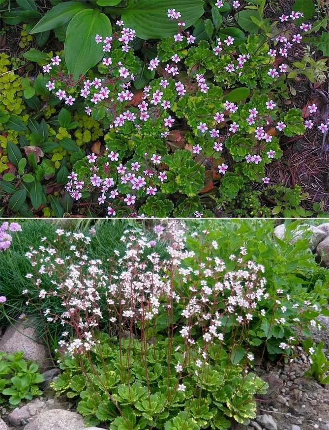 Маленькі багаторічні рослини часто утворюють великий, не квітучий дерновник. Ломикамінь - широко поширена рослина по всій північній півкулі. Рожеві квітки, зібрані в густе суцвіття. Ломикаменю подобається напівтіниста і волога позиція з родючим ґрунтом. Рослина виглядає дуже декоративно в масі, на великих просторах.