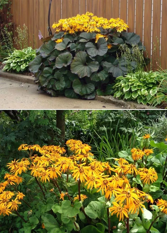 Відмінно росте в тінистих, вологих місцях. На яскравому сонці може засохнути. Язичник має кошики з жовтувато-квітковими квітками, цвіте в серпні-вересні. Велике листя також декоративне.