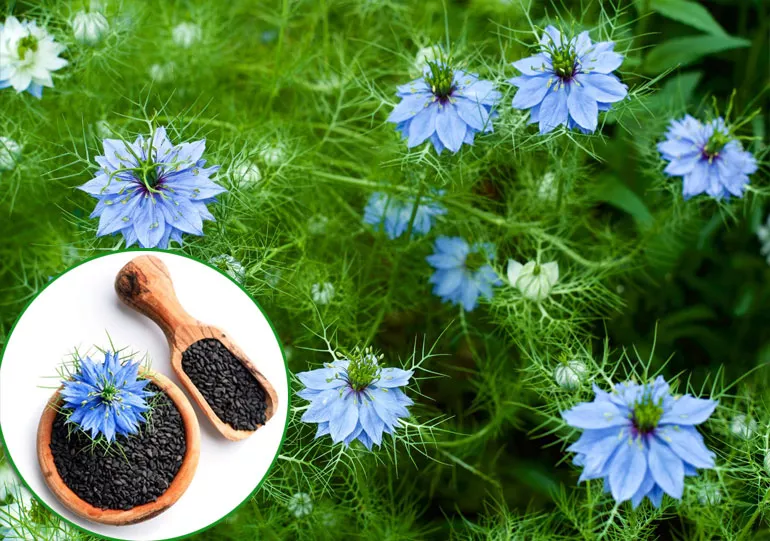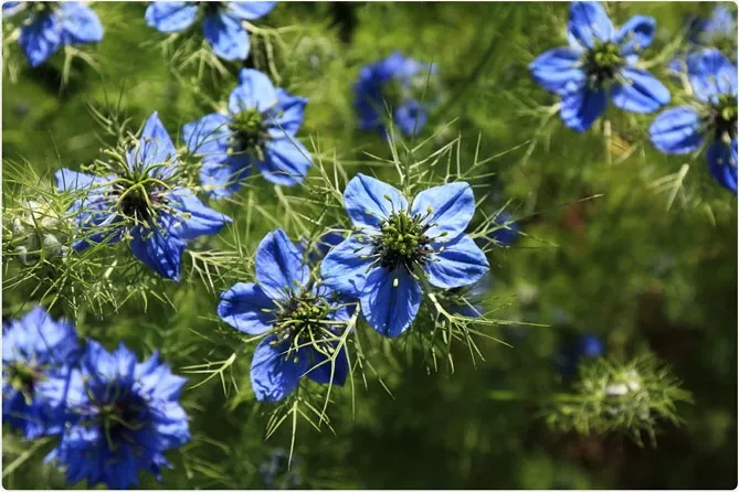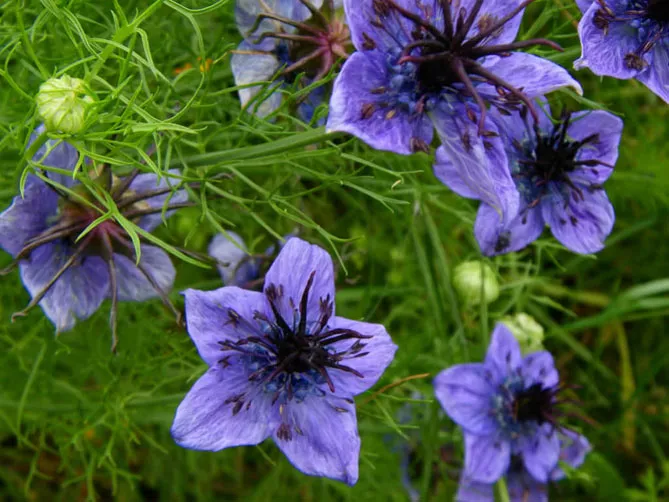 Цікаві сорти дамаської чорнушки з блакитними і синіми квітками: