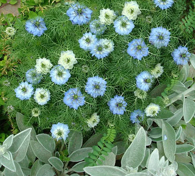 Оригінальний, але ніжний вигляд нігелли робить її особливо ефектною поруч із такими рослинами, як: