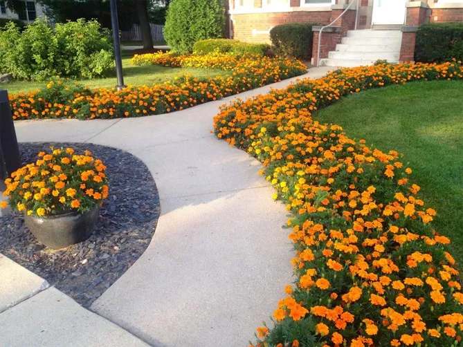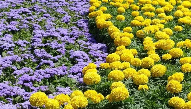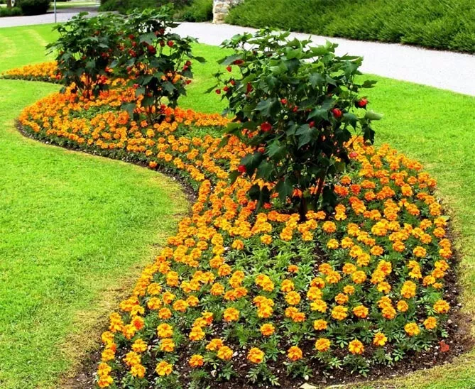 Ці популярні квіти цінуються через легкість вирощування, тривалого та рясного цвітіння. Чорнобривці починають цвісти в червні і цвітуть до жовтня в палітрі кольорів: жовтий, помаранчевий, червоний. Для бордюрів варто вибирати види та сорти з низьким зростом, що не перевищують 30 см у висоту.