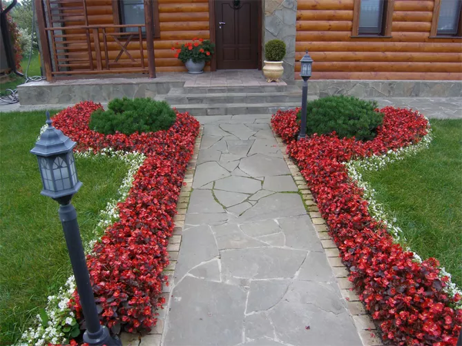 Красиві бордюрні квіти – бегонія (Begonia semperflorens). Цей однорічник зазвичай виростає до 50 см у висоту, її можна вести нижче якщо вибирати низькі сорти. Цвіте бегонія з червня по жовтень. Колір квіток – білий, жовтий, лососевий, помаранчевий, червоний. Цей вид дуже легко виростити, він красиво виглядає по межах і периметру.