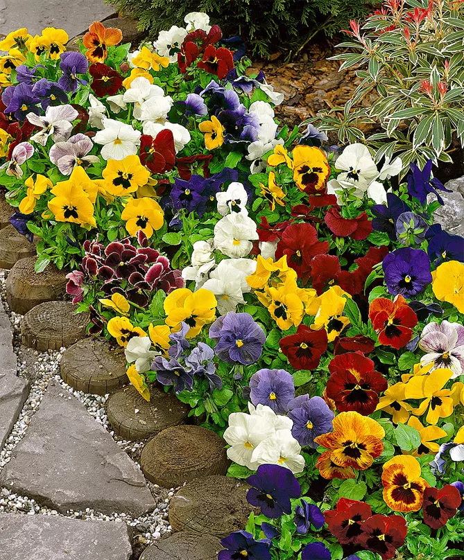 Її називають фіалка Віттрока, віола або братки (Viola vittrockiana). Популярна рослина успішно використовують для бордюрів і обводок з однією застереженням: потрібно саджати один сорт цих бордюрних квітів одного кольору. Віолу легко виростити, вона витримає випадкові витоптування, довго цвіте (березень – жовтень).