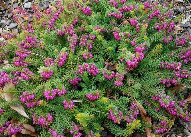 Чагарник схожий на верес, але це різні види рослин. Еріка цвіте з лютого (січня, якщо погода хороша) до квітня. Квіти мають форму глечиків, листки нагадують голки на стеблах і ростуть перпендикулярно до них. Чагарнику потрібна слабко кисла, проникна та помірно волога почва. Еріку слід саджати на сонячних або напівтінистих місцях.