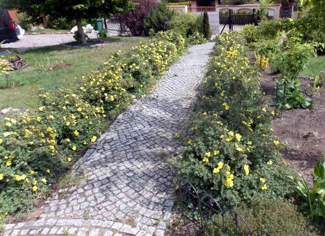 П'ятилистник кущиковий або перстач підходить для створення білих, жовтих або червоних бордюрів. Чагарник досягає висоти не більше 100 см. Перстач має сріблясто-зелені листки, цвіте з травня – червня по жовтень. Квіти перстачу бувають жовтими, білими, помаранчевими або у відтінках червоного.