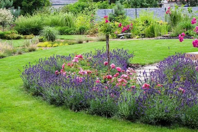 Популярна рослина для садів в стилі прованс – лаванда (Lavandula). Це один з найкрасивіших видів низькорослих квітів-багаторічників для створення квітучих бордюрів вздовж стежок та інших поверхонь. Лаванда зачаровує своїм зовнішнім виглядом, приємним запахом. Цвіте бузковим або фіалковим відтінком з липня по серпень. Лаванда досягає висоти 60 см. Деякі сорти лаванди морозостійкі.